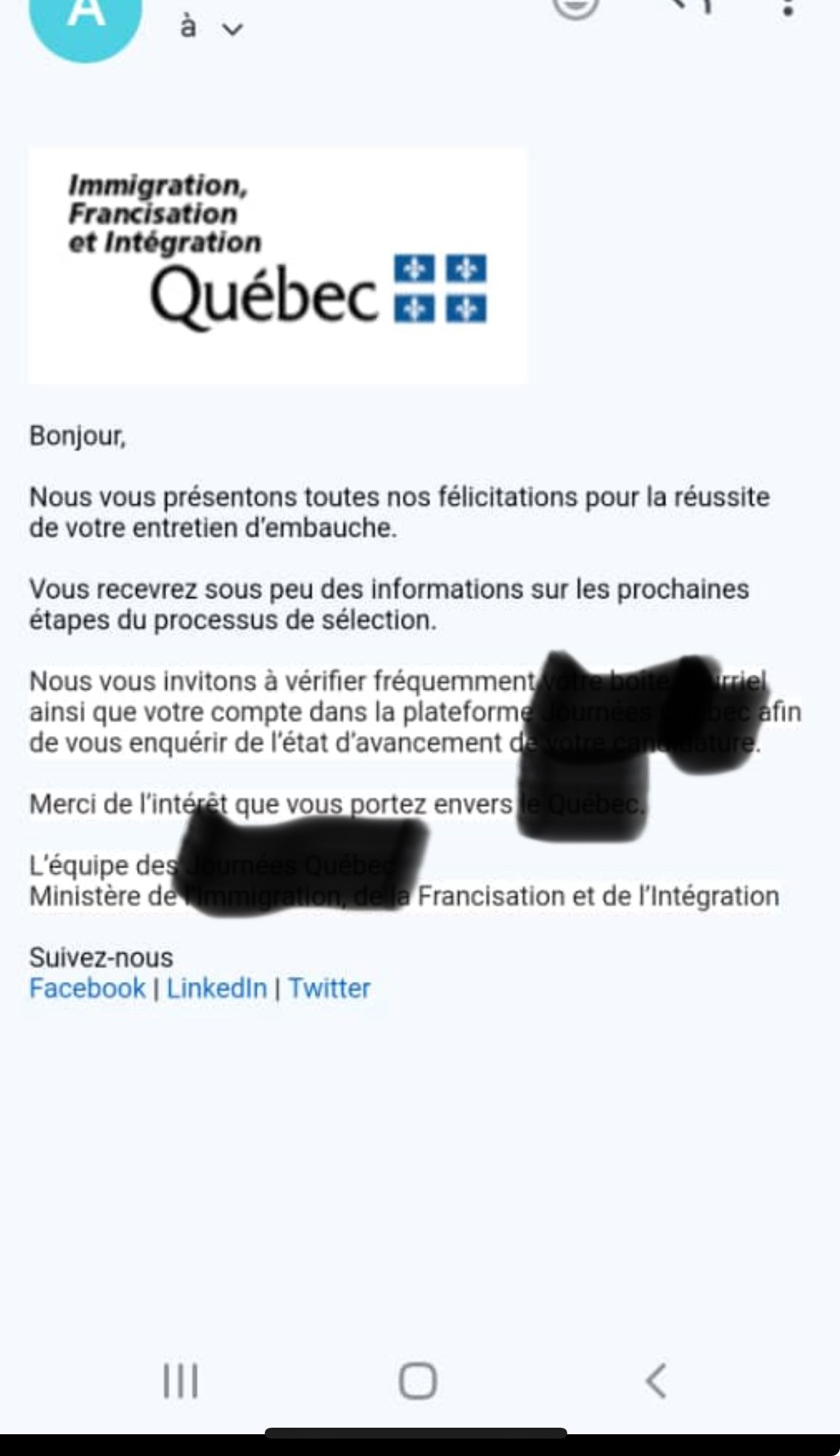 Il a réussi son entrevu et arrivera au Canada dans quelques mois seulement.